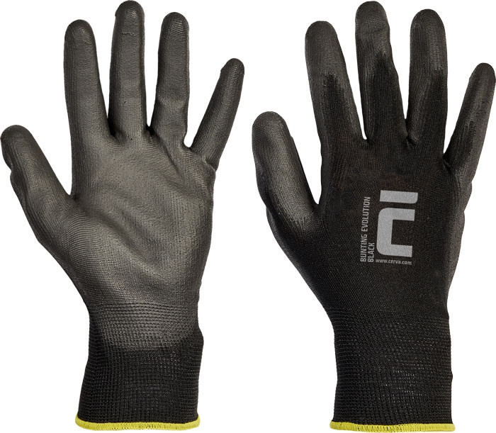 Kötött, varratmentes nylon kesztyű vékony poliuretán bevonatú tenyérrel és ujjakkal, valamint rugalmas mandzsettával.