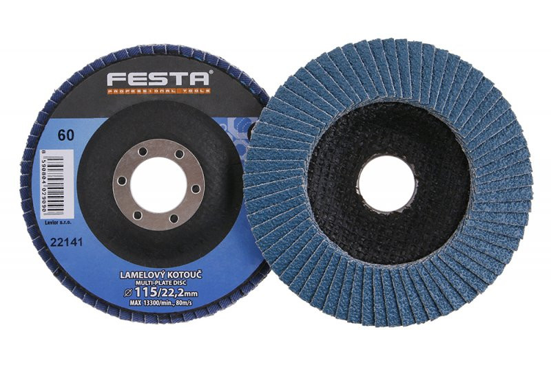 A lamellás csiszolótányér vászonból készült csiszolólamellái legyezőszerű, sugaras elrendeződésének köszönhetően a szokványos szerszámok csiszolási teljesítményének többszörösét éri el.