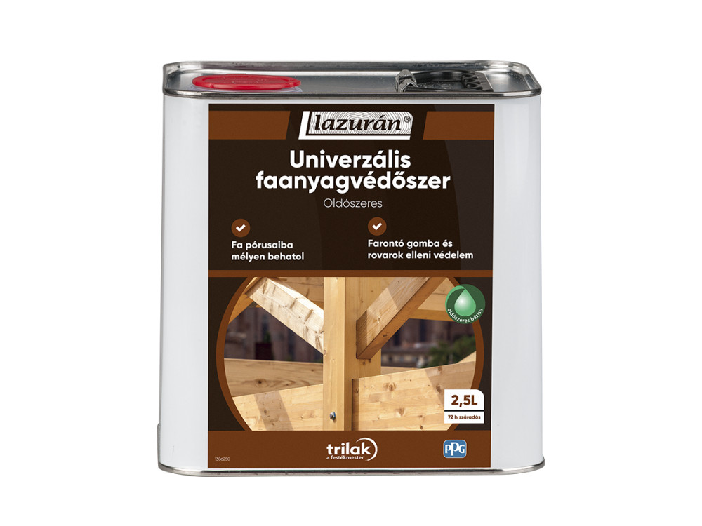 Excellent for protecting exterior wooden structures, both as a remedial and preventive measure. It is used to protect sound, air-dry wooden materials (window frames, garden furniture, etc.), whether treated or bark- and bark-free, against blue mould, wood decay fungi (weeping house fungi, pine plywood, pine wood plywood, house bark fungi, discolouring fungi, etc.) and insects. It is deeply absorbed into the fibres of wood and adheres firmly to them. It is recommended for use outdoors or in areas exposed to moisture. It does not form an opaque coating. It is deeply absorbed into the wood fibres where it adheres.