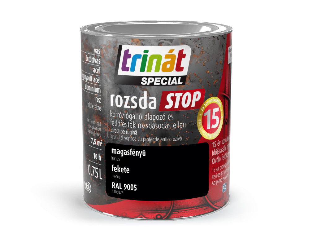 Trinát special rozsdaSTOP zománcfesték magasfényű fekete [RAL9005] 0.75 L