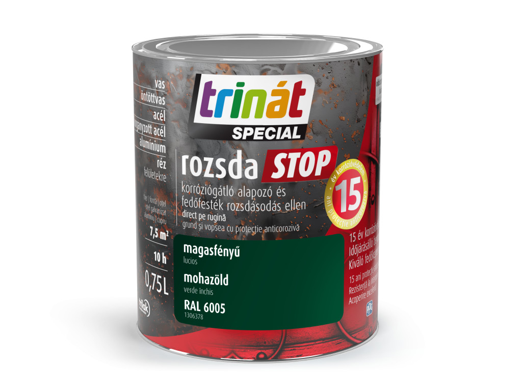 Trinát special rozsdaSTOP zománcfesték magasfényű mohazöld [RAL6005] 0.75 L