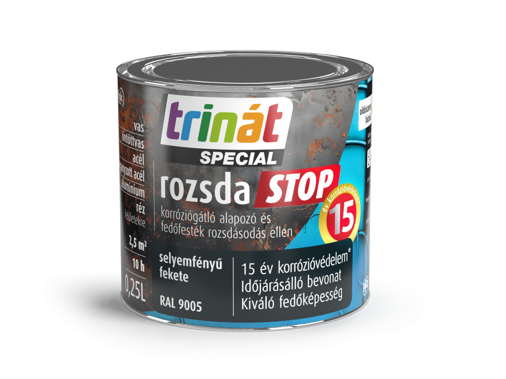 Trinát special rozsdaSTOP zománcfesték selyemfényű fekete [RAL9005] 0.25 L
