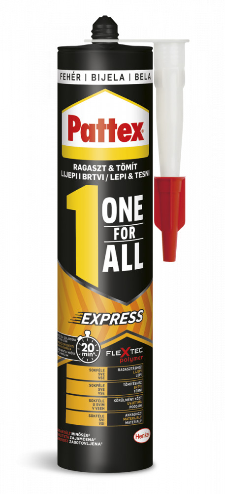 A Pattex One For All High Tack élenjáró polimer technológia felhasználásával és a Henkel által szabadalmaztatott FLEXTEC® eljárással készült, modifikált-szilán bázisú, reaktív ragasztóanyag. A ragasztás néhány minutesig korrigálható.
