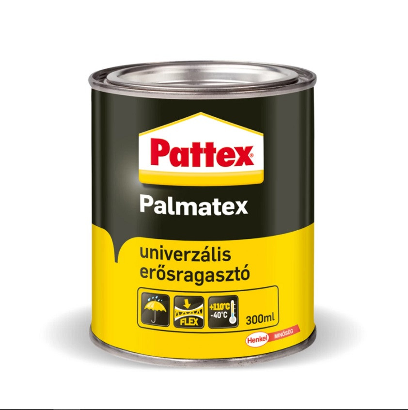 A Pattex Palmatex univerzális erősragasztó a kontaktragasztók leggyakrabban használt típusa, rendkívül széles felhasználhatóság jellemzi. Gyorsan és nagyon erősen ragaszt. Vízálló, a ragasztás ellenáll híg savaknak és lúgoknak.