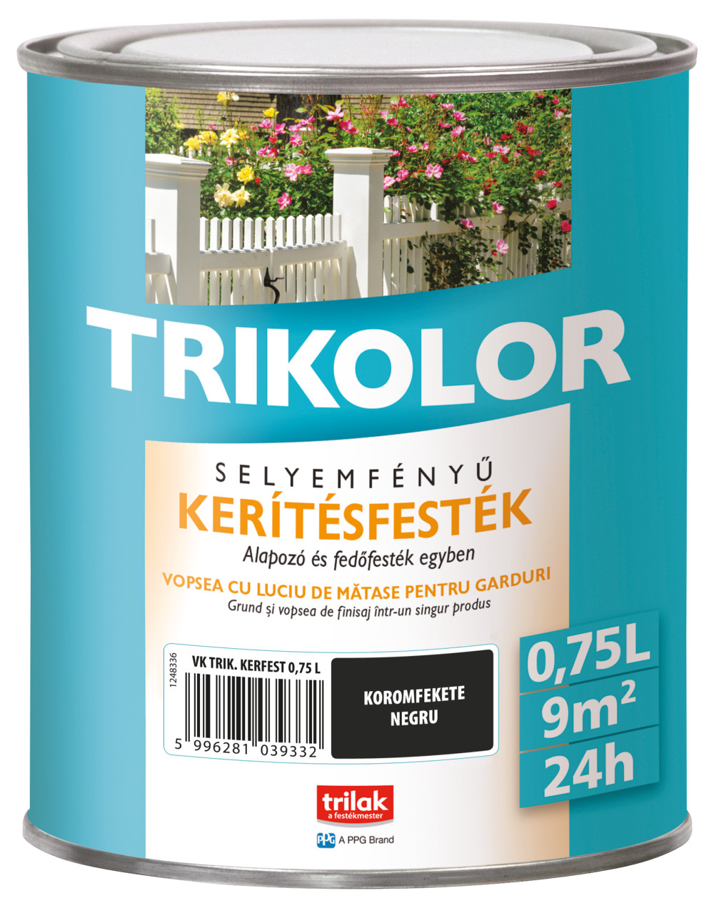 Trikolor selyemfényű kerítésfesték koromfekete 0.75 l